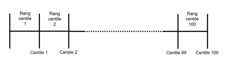 Le rang centile est la mesure de position d’une donnée dans une série statistique ordonnée et divisée en 100 intervalles de même effectif.