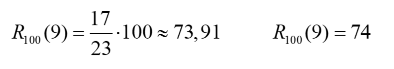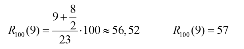 Si on calcule le rang centile de « 9 » à l’aide des deux formules, voici les résultats obtenus :