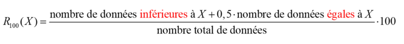 La seconde formule permet donc d’avoir un résultat plus représentatif pour cette mesure de position dans la distribution.